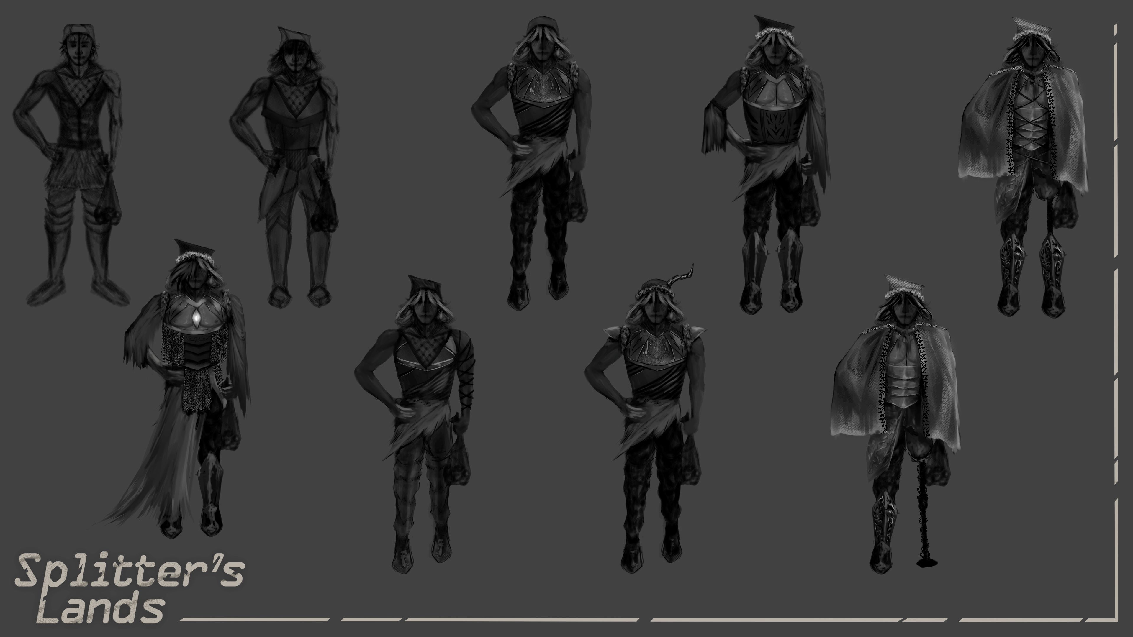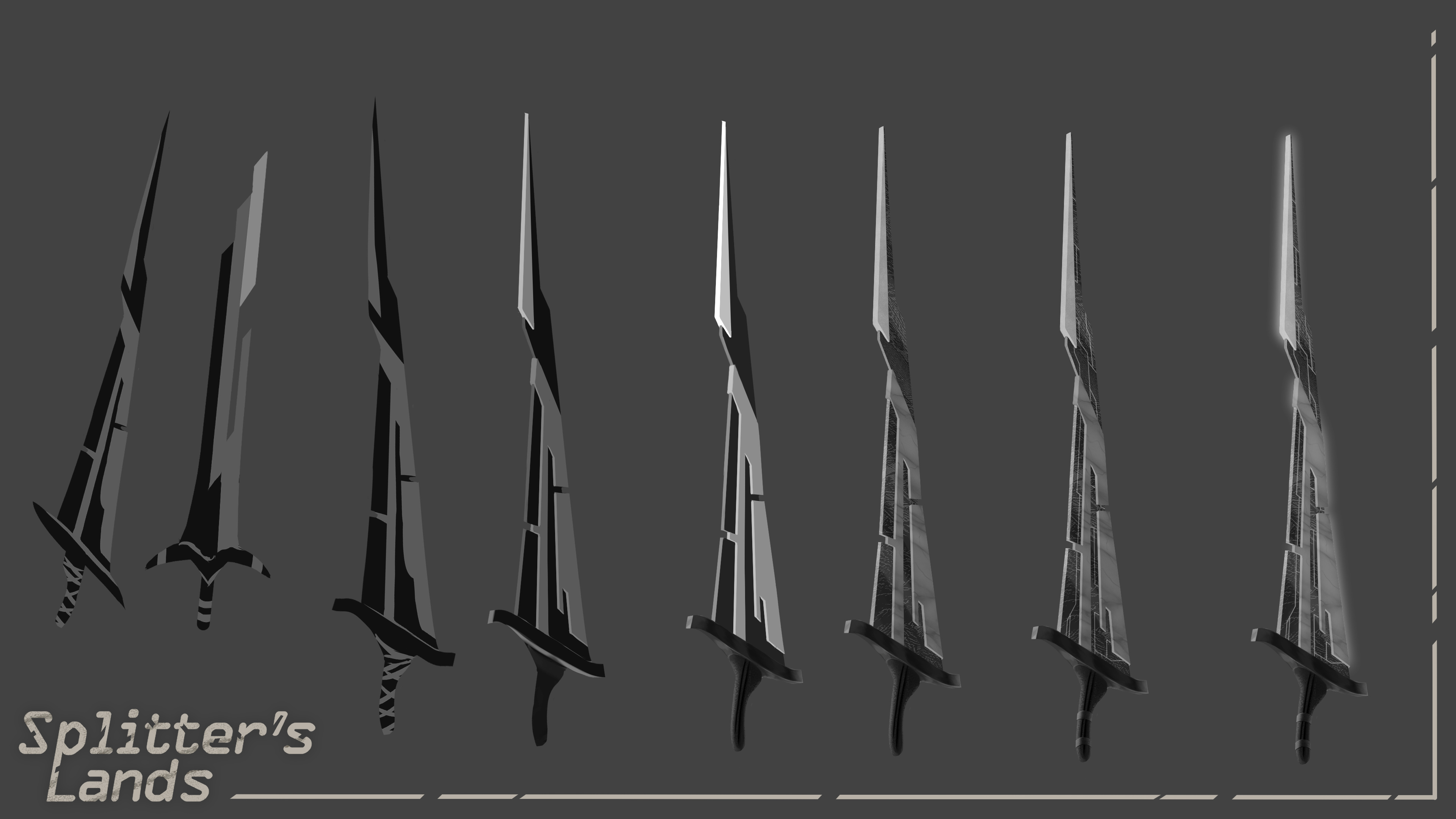 Designs for main character, weapon, and a prop for a Fantasy and Sci-Fi themed Adventure series.