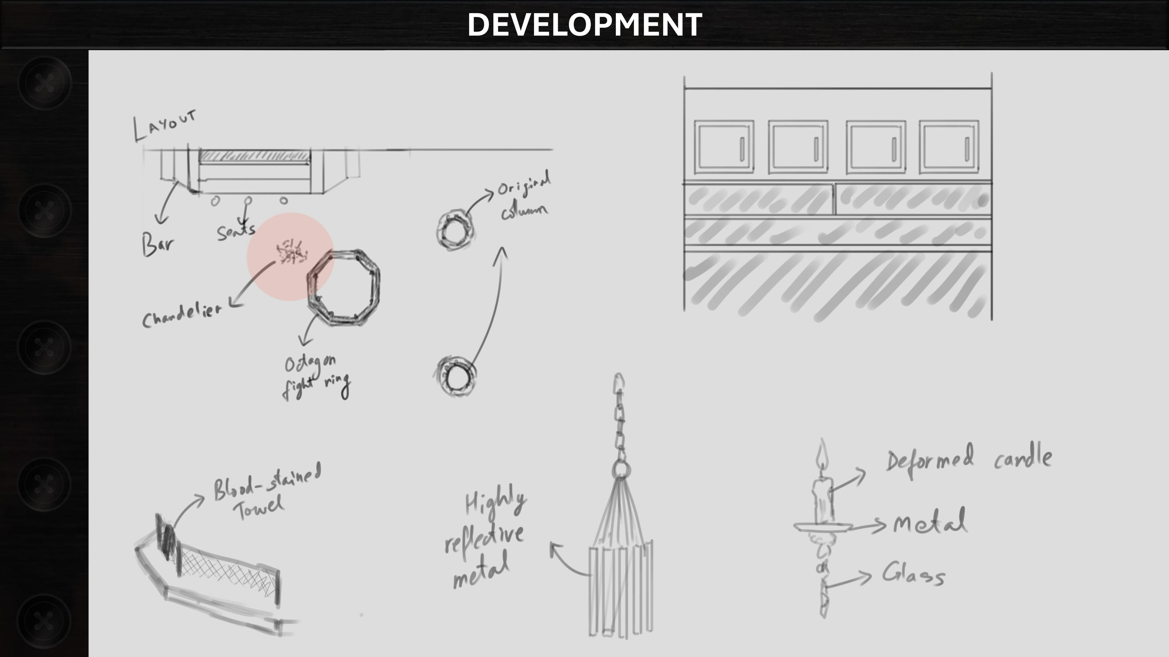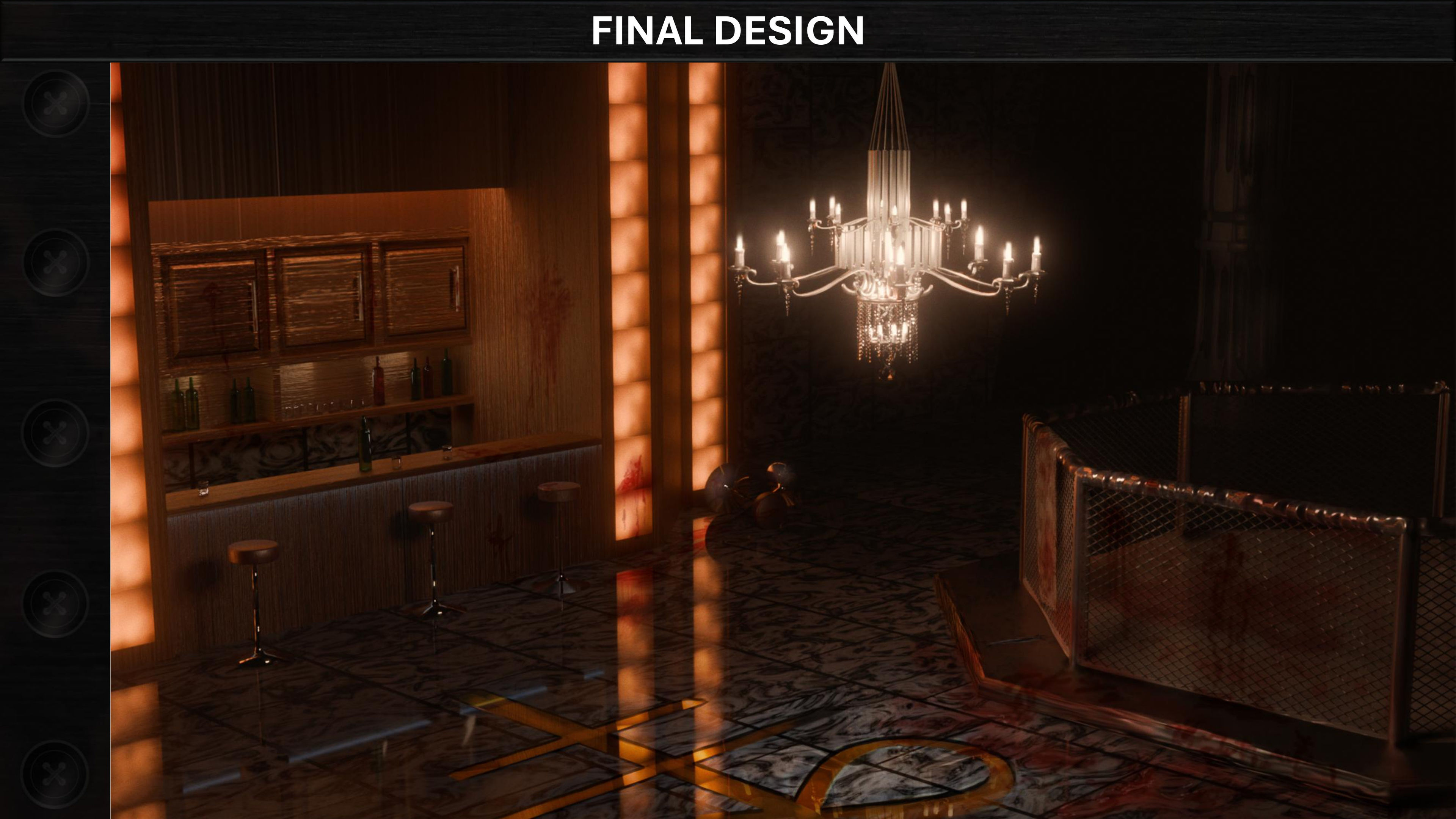 Interior and Exterior designs for a cathedral repurposed into a criminal hideout in a city sinning of Greed.